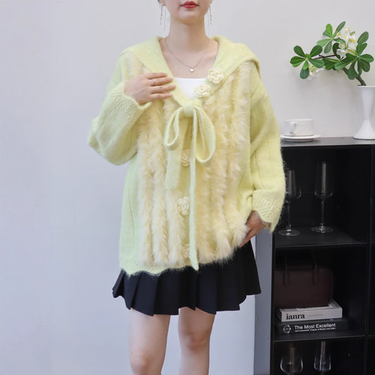 Design Sense Mink Fur Three-Dimensional Flower Knitted Cardigan Women's Cute Sweet Sweater Jacket